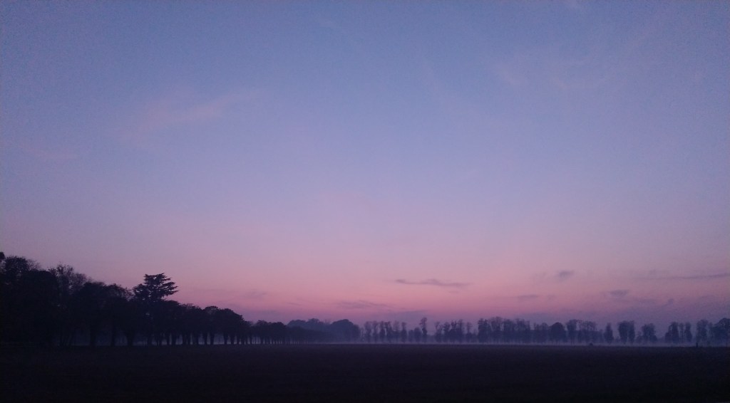Un tramonto meraviglioso che richiamava i colori del divino (ovvero il viola). Dentro di me la preghiera di riuscire a godere di quell’istante il più possibile perchè sapevo non sarebbe durato per sempre, ma solo pochi minuti. Gli alberi diventare via via più scuri, erano le ombre perfette di uno scenario che sembrava volesse annunciare la discesa in terra di dio.